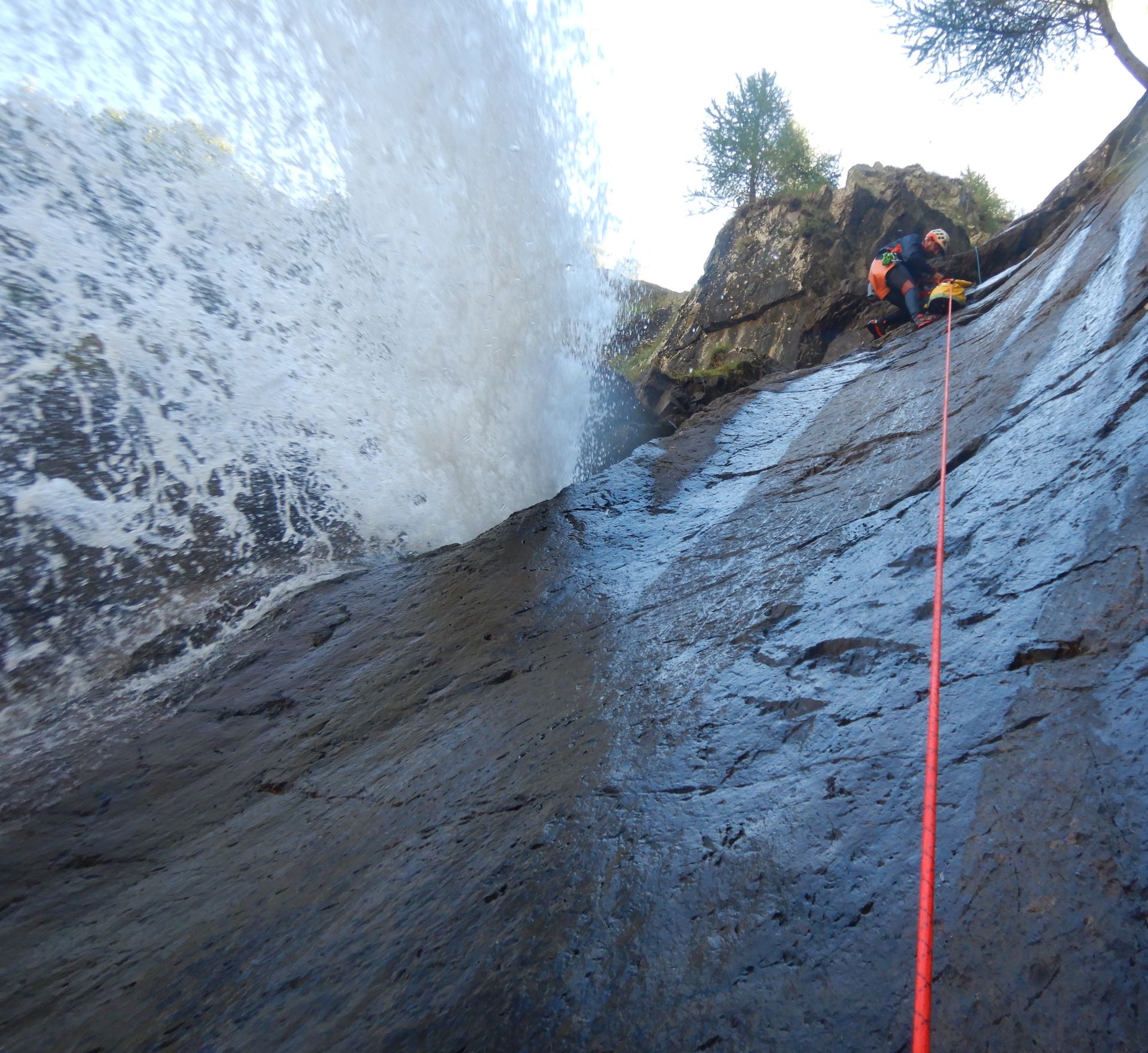 Cette deuxième partie ajoute au côté ludique du canyoning, une vraie dimension technique en matière de gestion de corde, notamment la descente en rappel. On rencontre très vite des relais en pleine paroi, des cordes à nœuds qu’il faut grimper, des mains courantes (corde fixée au préalable à flanc de falaise) à emprunter, un vrai bonheur de technicité ! La proximité de l’eau reste toujours d’actualité et les formations géologiques émerveillent nos pupilles !