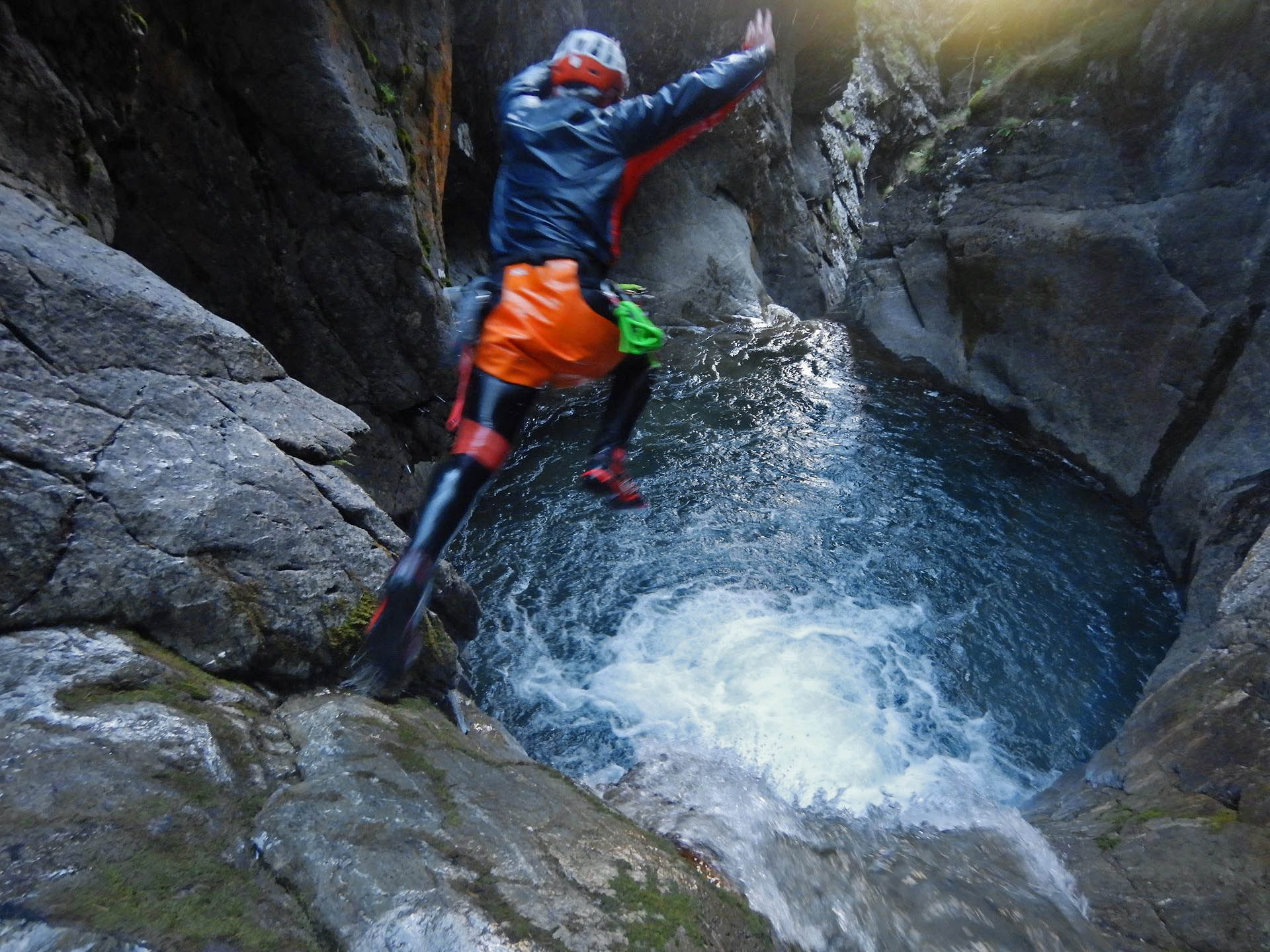 Important : ce parcours nécessite d’avoir déjà pratiqué du canyoning et d’être à l’aise avec les sauts de grande hauteur (6 mètres minimum).