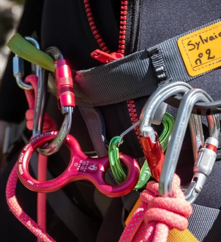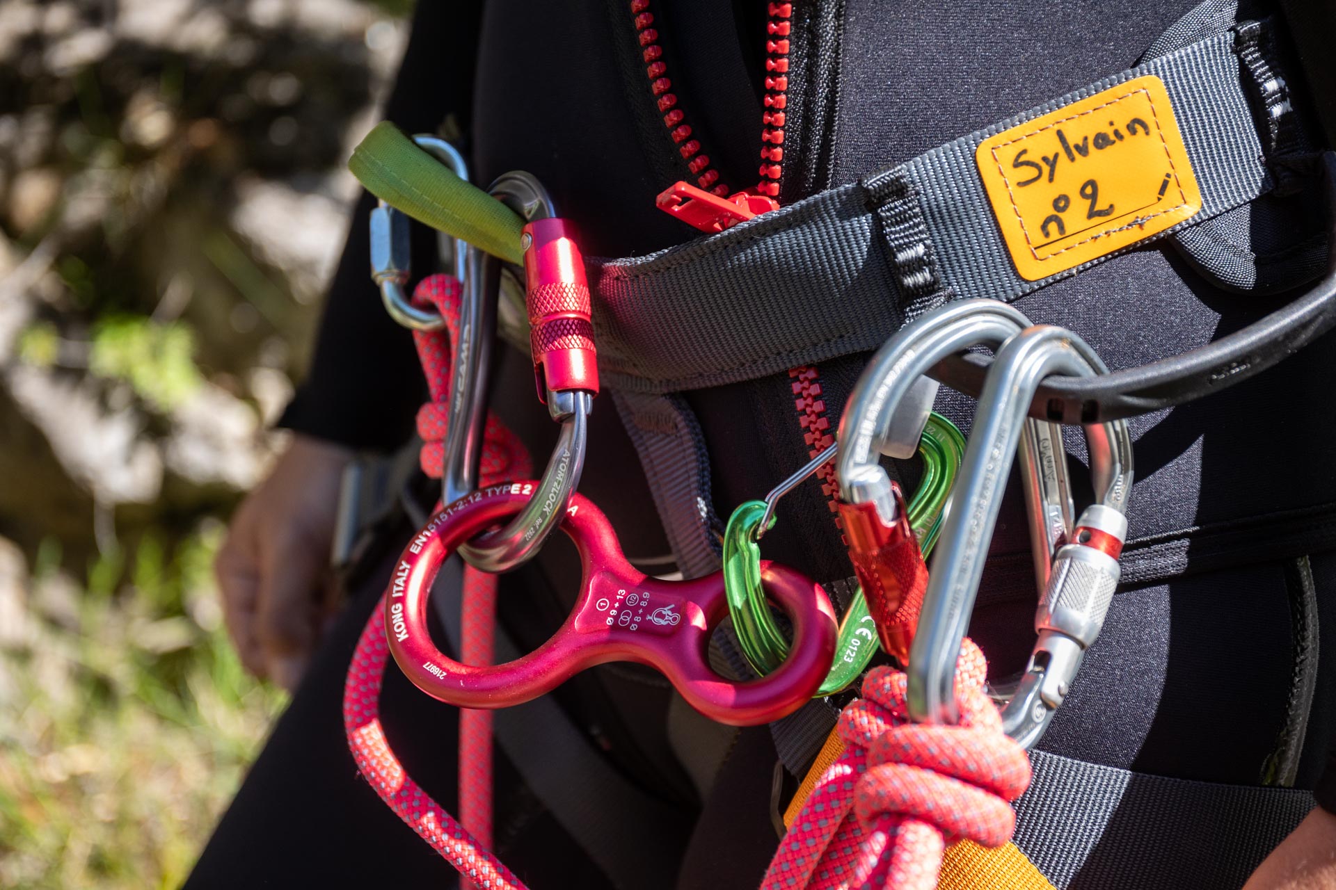 – Tout l’équipement de progression et de sécurité – combinaison, casque, baudrier, longe.